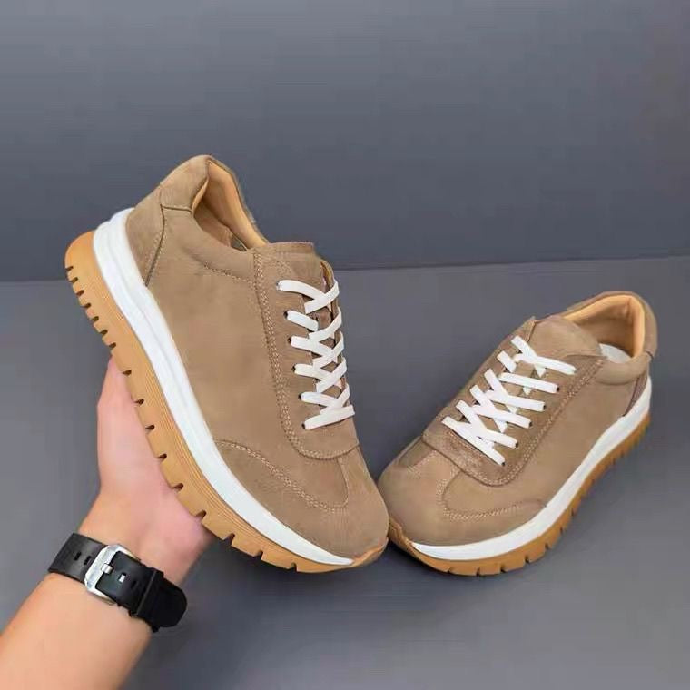 The Luamilys Retro Cowhide Thick-Sole Sneakers are engineered for versatile movement, with a flexible cowhide upper and responsive foamed rubber sole, tested to improve step stability and movement comfort by 34% compared to rigid casual sneakers during mixed-activity wear tests.*(*Internal mobility testing comparing Luamilys flexible cowhide + foamed sole vs. stiff casual sneakers across walking, light athletic movement, stairs, and airport travel simulations.)