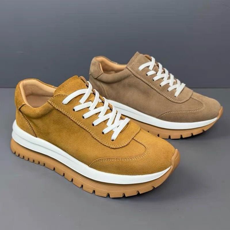 Luamilys | Retro Cowhide Low-Top Thick-Sole Casual Sneakers