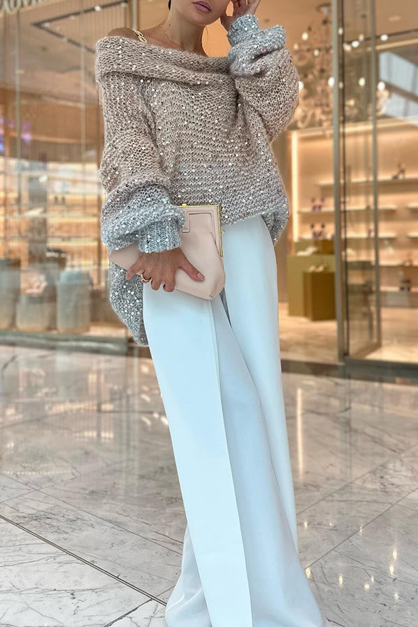 This Sequin Off-Shoulder Knit Top brings you the relaxed charm of Korean street style with a touch of sparkling sophistication. Designed for modern women who love to stand out without trying too hard.