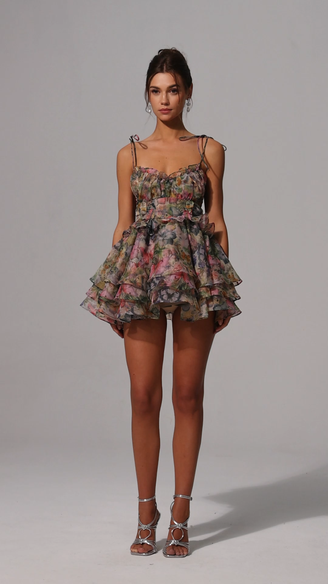 Hester Sleeveless V-Neck Lacing Flounce Mini Dress