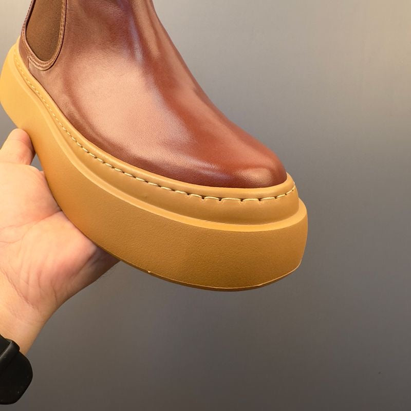 Most leather boots look premium—but after a few hours on concrete, they start to feel heavy, stiff, and punishing on the soles.The Luamilys Handmade Horse Leather High-Top Retro Chelsea Sneakers are built differently.In internal wear testing, the lightweight rubber-foam outsole showed up to 36% lower plantar pressure and impact force compared with traditional solid-rubber and leather-soled boots during long walking and standing sessions.(*Internal test comparing Luamilys rubber-foam outsole vs. conventional solid rubber outsole across 8-hour wear, including 12,000 walking steps and extended standing on concrete flooring.)The result: noticeably softer landings, smoother step transitions, and significantly reduced end-of-day foot soreness.