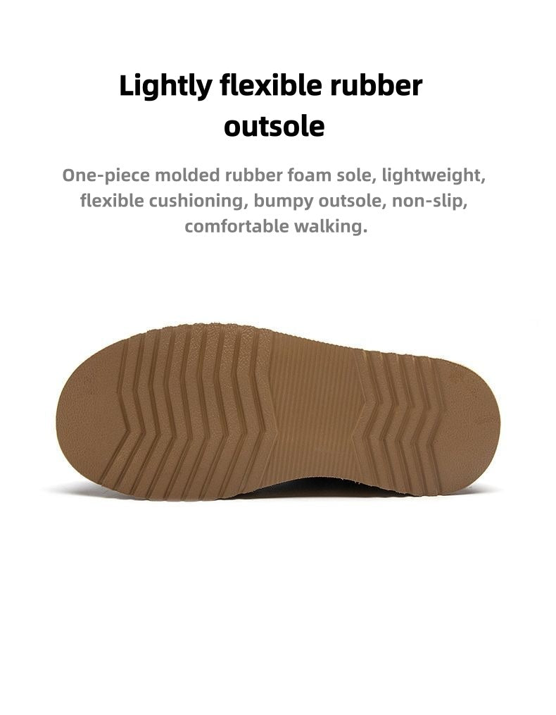 Crafted from premium cowhide leather, the upper offers a naturally textured finish that balances toughness with breathability. The leather structure provides excellent wear resistance while gradually softening over time for a personalized fit. A round-toe, workwear-inspired shape ensures comfortable toe space, making long hours of walking or standing easier on the feet.