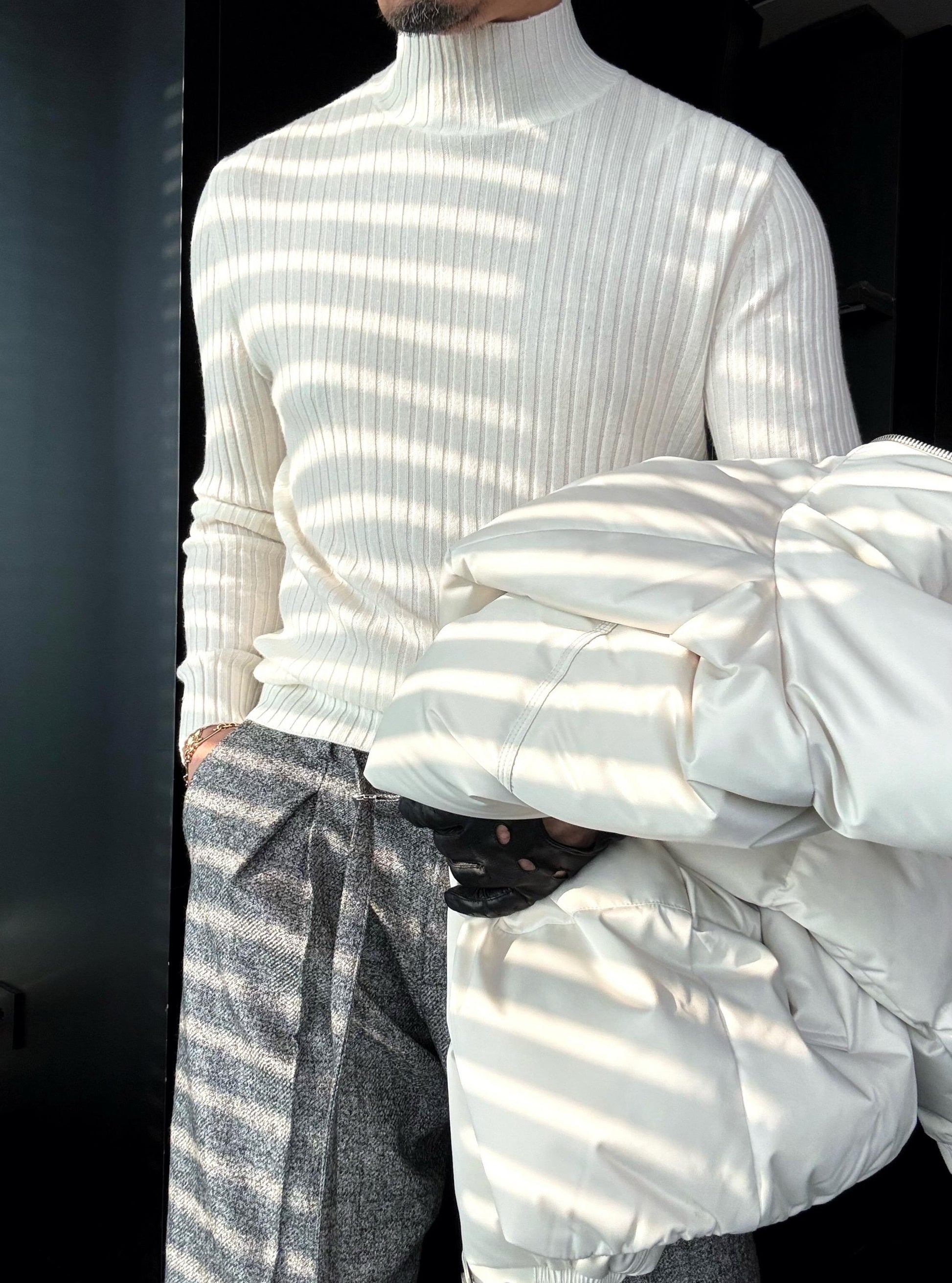 Clean, simple, and intentionally designed, this half-turtleneck sweater elevates everyday outfits with minimal effort. Worn on its own, it delivers a streamlined, modern look. Layered under a blazer, coat, or jacket, it stays smooth and polished—no bulky neckline, no bunching.The half-turtleneck frames the face neatly and adds subtle structure, making it more refined than a basic crewneck while remaining relaxed and easy to style. It’s the kind of piece that makes simple outfits look intentional.