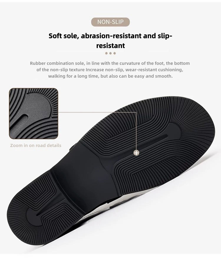 ⭐⭐⭐⭐⭐"📍 These shoes feel tailor-made for city life. Between transit, errands, and casual meetings, I walk a lot daily — and these keep up. The breathable mesh does a brilliant job at letting air flow, which makes long days so much more comfortable compared to any full leather shoes I’ve owned. The rotating buckle closure is surprisingly convenient — secure and easy to adjust on the go. The leather stays clean-looking and pairs impeccably with my everyday outfits — jeans, chinos, and even casual button-downs. I’ve worn them through drizzle, puddles, and brisk winds, and the traction is reassuring. They look great and feel even better. Highly recommended if you want comfort and style without sacrificing practicality. 👔☕️"